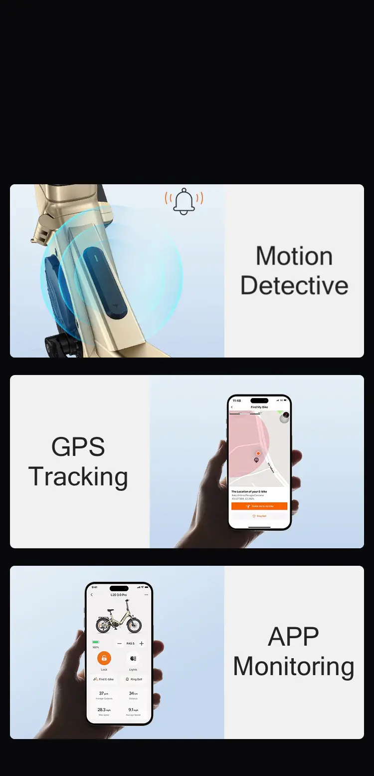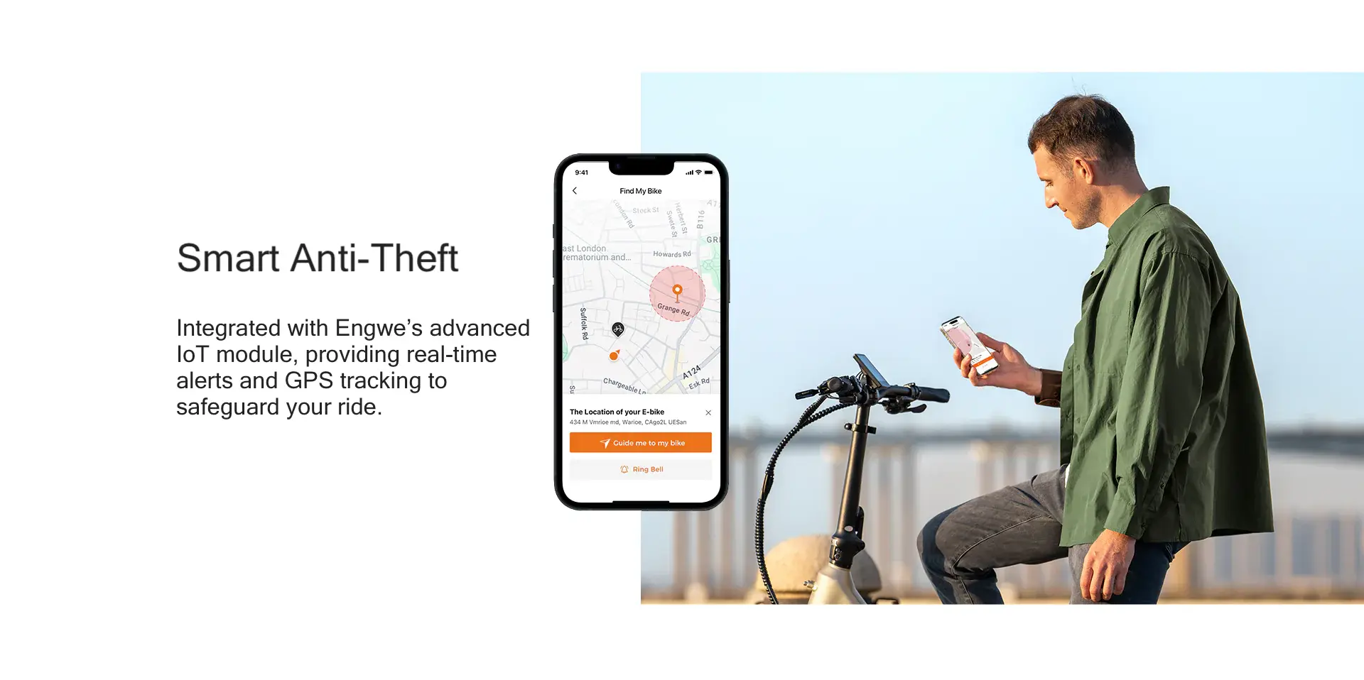 Stay in control with motion alerts, GPS positioning, and app-based monitoring, ensuring your e-bike is always within reach.