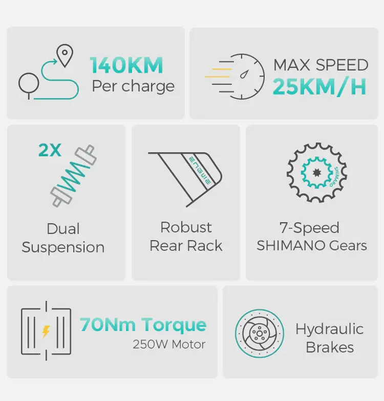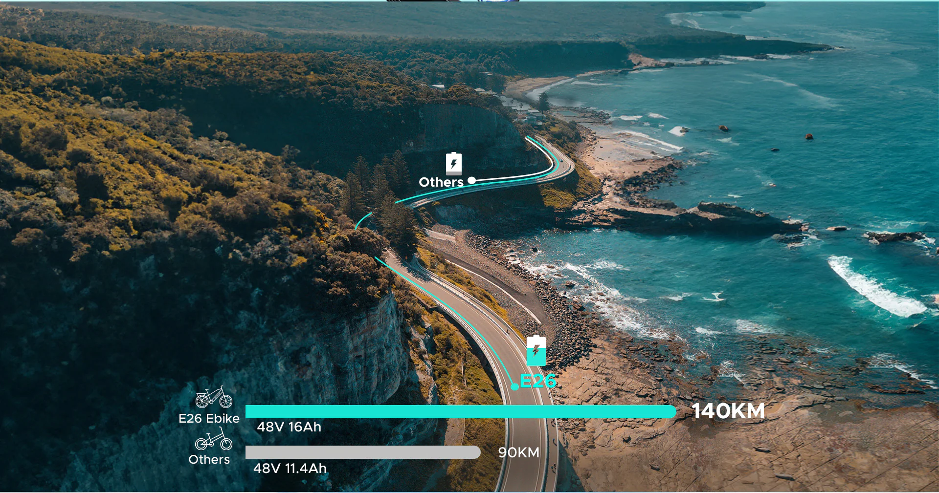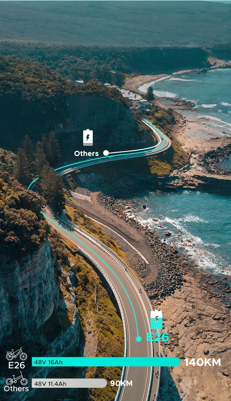 La batería de litio portátil ENGWE E26 de 16Ah ofrece 140 km de autonomía asistida por cada carga