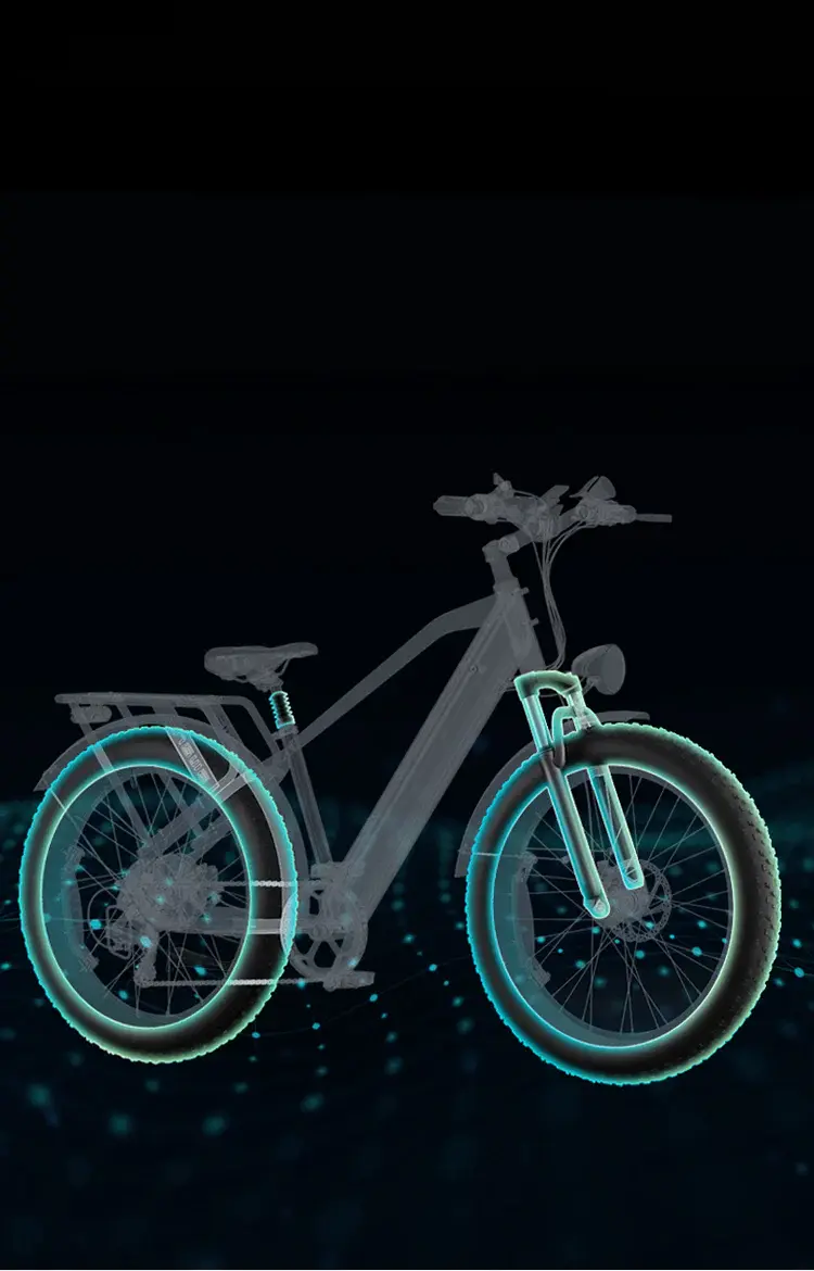 La suspensión en la rueda delantera y el asiento, equipada con llantas anchas de 26* 4.0 pulgadas, suaviza incluso los viajes más irregulares para un paseo divertido y tranquilo.
