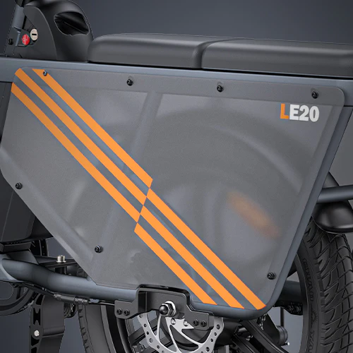 Los neumáticos duraderos del LE20 están diseñados para soportar terrenos difíciles y calles urbanas, minimizando al mismo tiempo el riesgo de pinchazos.