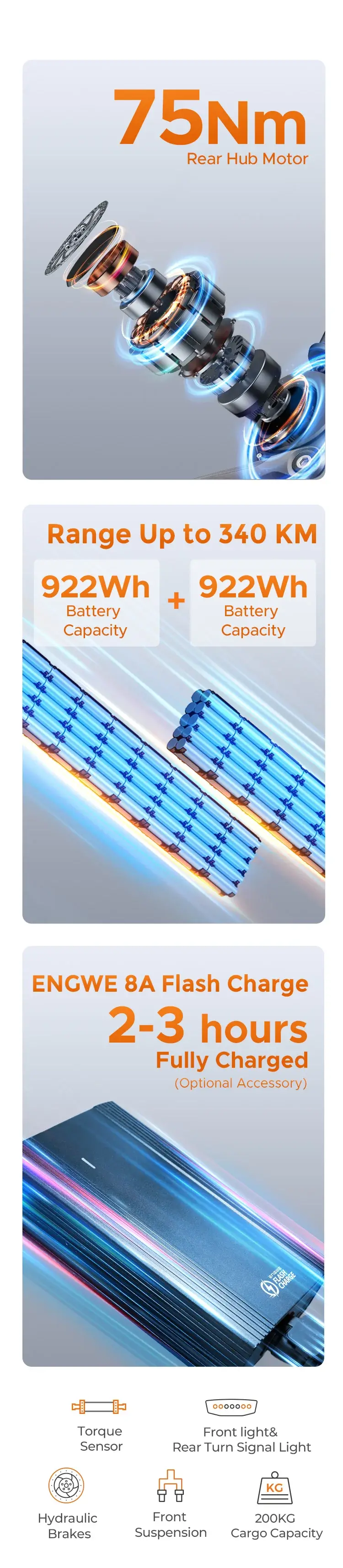 ENGWE LE20 — Bicicleta eléctrica de carga de súper alcance