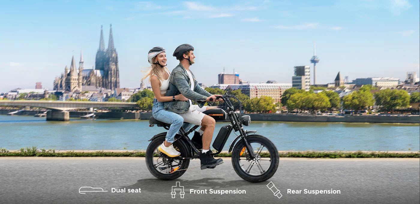 Bicicleta eléctrica estilo motocicleta para dos pasajeros con par motor de 65 Nm y estándar de la UE