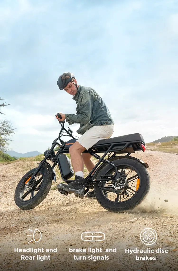 Ya sea en caminos urbanos llenos de baches o en senderos aventureros, la suspensión absorbe los impactos y proporciona un andar estable y suave.